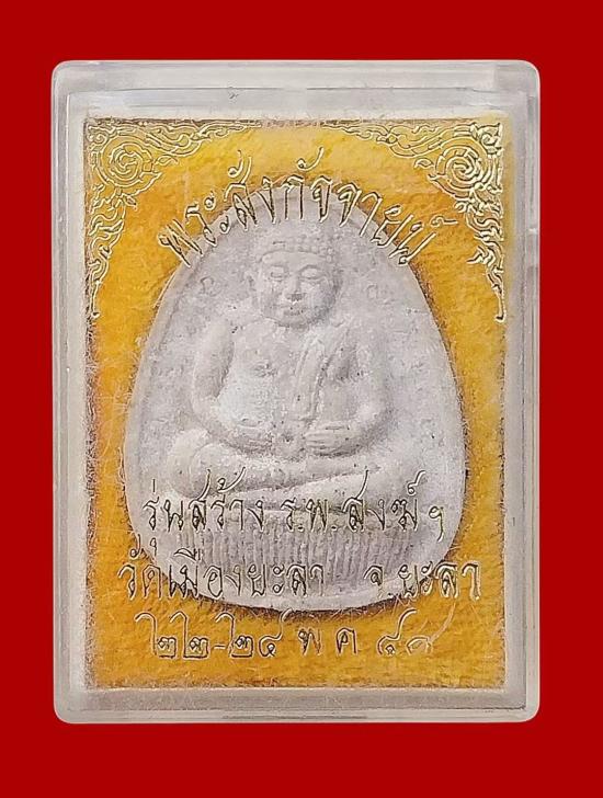 สร้างและปลุกเสกพร้อมกับพระหลวงพ่อทวดรุ่นสร้าง ร.พ.สงฆ์ ปี 2540 ของวัดเมืองยะลา พิธีปลุกใหญ่มาก เกจินำโดยอาจารย์นองวัดทรายขาว อาจารย์ทองวัดสำเภาเชย พ่อท่านฉิ้น โชติโก เจ้าอาวาสวัดเมืองผู้จัดสร้าง และเกจิสายเขาอ้อมารวมตัวกันมากที่สุด ผสมมวลสารเก่าเก็บของวัดเมือง และวัดลำพระยา เนื้อว่านและผงใช้อย่างเดียวกับหลวงพ่อทวดรุ่นสร้าง ร.พ.สงฆ์ แต่พิเศษคือ ฝังตะกรุดใต้ฐาน 1 ดอก และแช่น้ำพระพุทธมนต์ในพิธีปลุกเสก |