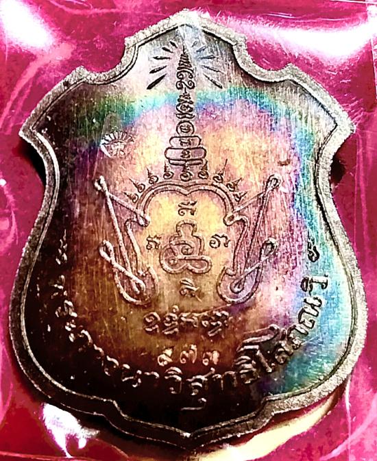 วัดใจ...เหรียญนั่งธรรมาสน์ พระมหาสุรศักดิ์ วัดประดู่ เนื้อทองแดงรมมันปู หมายเลข 973 (เก้าหน้าเจริญรุ่งเรืองก้าวหน้า) ที่ระลึกอายุวัฒนมงคล 60 ปี ผิวรุ้งทั้งหน้าและหลังเหรียญ เหรียญจริงสวยมากๆพร้อมกล่อง