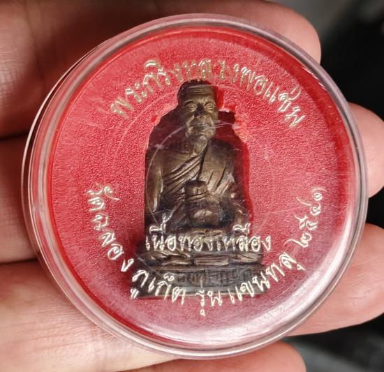 พระกริ่งหลวงพ่อแช่มวัดฉลองเนื้อทองเหลืองรุ่นแขนทะลุปี 2541 จังหวัดภูเก็ต(กล่องเดิม) |
