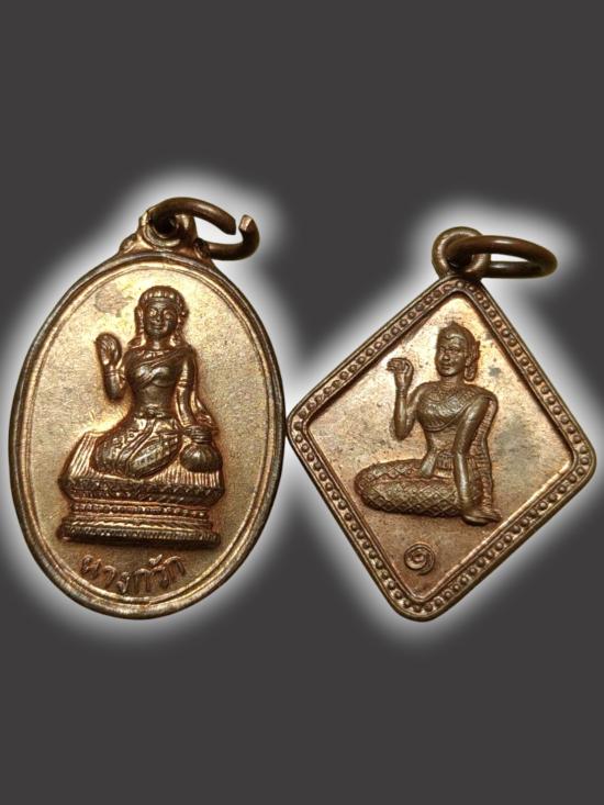 A3804.ยกคู่!! เหรียญเเม่นางกวัก วัดพนัญเชิง ปี 39 + เเม่นางกวัก หลังเต่า รุ่นเเรก ปี 33 |