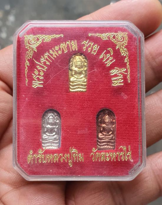 วัดใจพระปรกใบมะขาม รวยเงินล้าน หลวงปู่ทิม วัดละหารไร่ เนื้อชุบทอง เงิน นาค ปี56 พร้อมกล่องเดิมๆๆ |