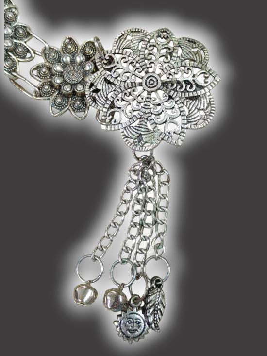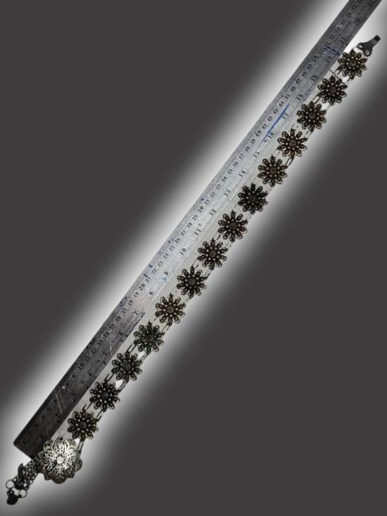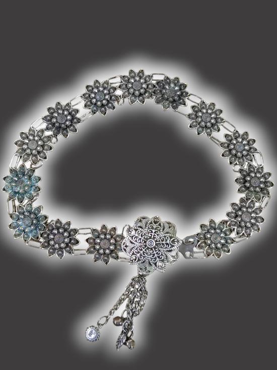 A3843.เข็มขัดโลหะชุบเงิน เข็มขัดล้านนา เข็มขัดลายดอกไม้ ตามรูป เคาะเดียวเเดง |