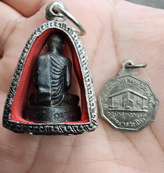 วัดใจ 1 + 1 รูปหล่อหลวงปู่ฝั้น เเนื้อนวะ กรอบเงิน ไม่ทราบรุ่น + เหรียญแปดเหลี่ยม ชุบนิเกิ้ล ปี21