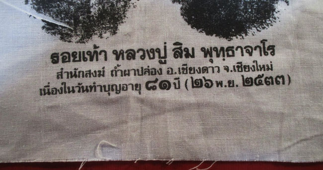 ผ้ายันต์ รอยเท้า หลวงปู่สิม พุทฺธาจาโร สำนักสงฆ์ ถ้ำผาปล่อง อ.เชียงดาว จ.เชียงใหม่ ครับ (พระบ้าน ครับ) |