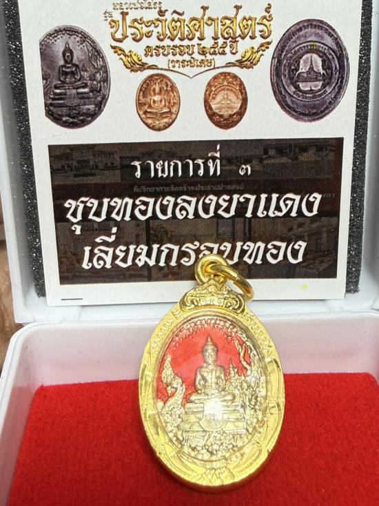 ((วัดสร้าง))เหรียญหลวงพ่อโสธรรุ่นประวัติศาสตร์ครบรอบ 255 ปี วาระพิเศษ เหรียญชุบทองลงยาแดงเลี่ยมกรอบทองเดิมจากวัด โค้ตเลข 131 พร้อมกล่องเดิม |