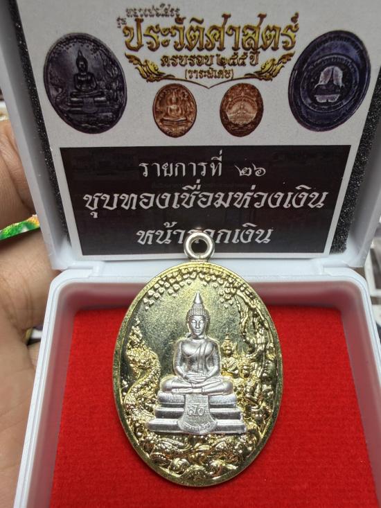 ((วัดสร้าง))เหรียญหลวงพ่อโสธรรุ่นประวัติศาสตร์ครบรอบ 255 ปี วาระพิเศษ เหรียญชุบทองห่วงเชื่อมเงินแท้ หน้ากากเงินแท้ โค้ตเลข 20 พร้อมกล่องเดิม |
