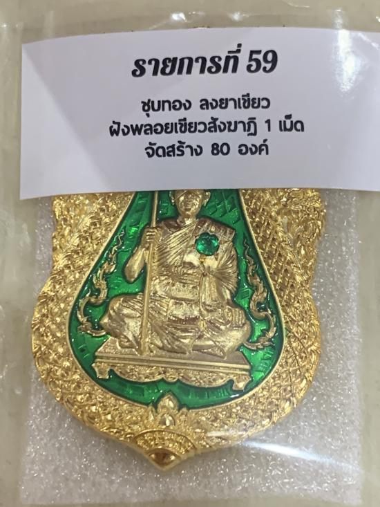 มาแรง 1 ใน 80 เหรียญเสมาพญาเสืออุดมทรัพย์ พระอาจารย์ประสูติ (หลวงพ่อประสูติ) วัดในเตา ตรัง เนื้อชุบทอง ลงยาเขียว ฝังพลอยเขียวสังฆาฏิ 1 เม็ด เลขสวยNO.75 |