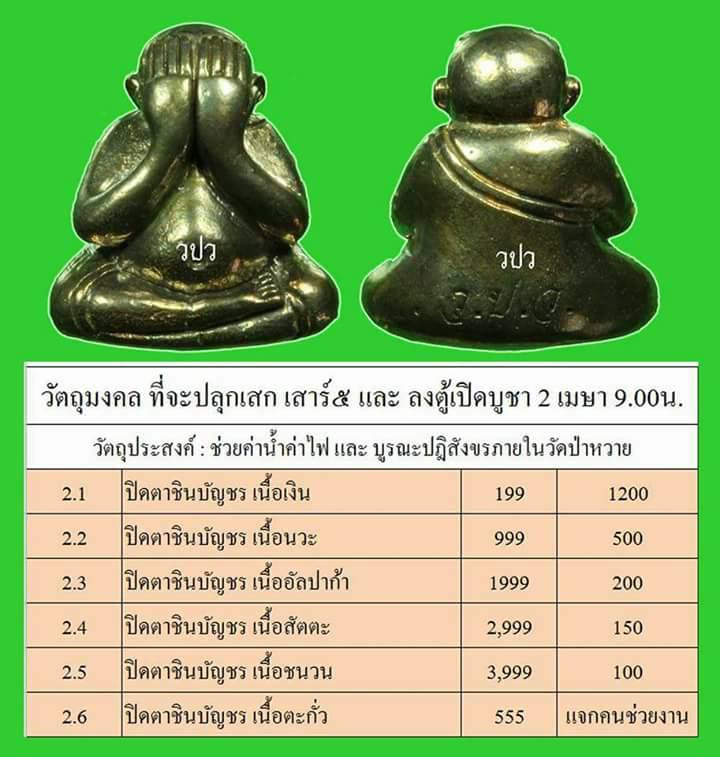 พระปิดตาชินบัญชร (รุ่นแรก) หลวงพ่อรัตน์ วัดป่าหวาย จ.ระยอง เนื้ออัลปาก้า หมายเลข 610 พร้อมกล่องเดิม |