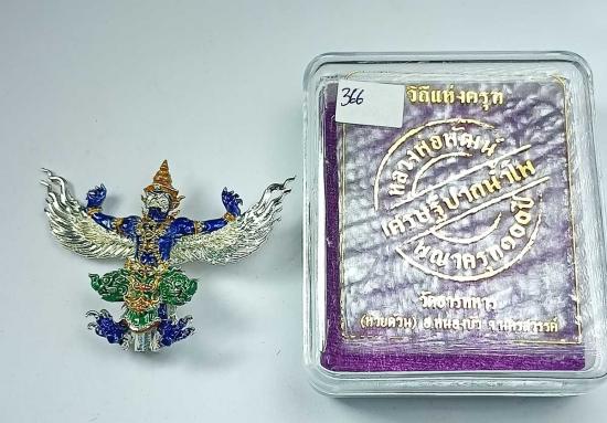 พญาครุฑ 100 ปี เศรษฐีปากน้ำโพ หลวงพ่อพัฒน์ ปุญญกาโม วัดห้วยด้วน เนื้อมหาชนวนชุบเงินลงยาราชาวดี (ชุดพิเศษตัดบิล) เบอร์ 366 พร้อมกล่องครับ (องค์ใหญ่ ขนาด 4 x 5.5ซม.)