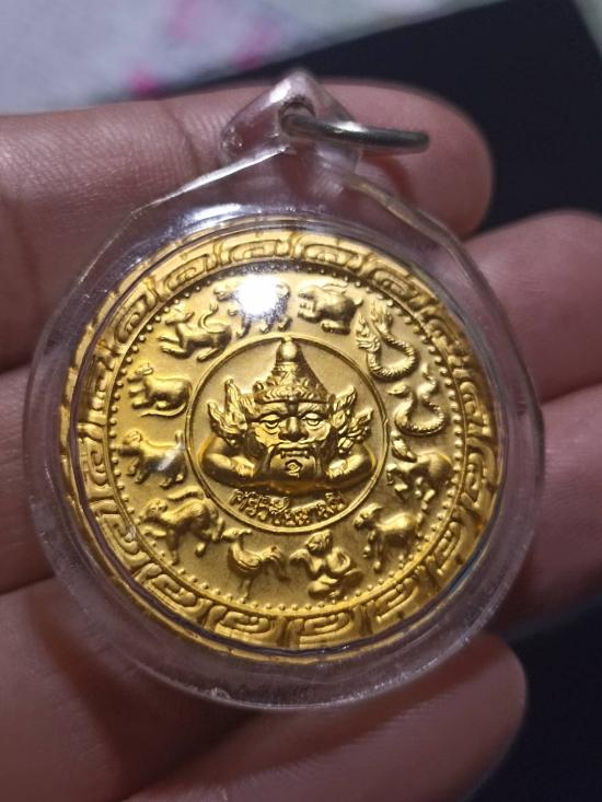 เหรียญพญาราหูคุ้มดวง "ศรีวิชัยนามปี" วัดถลุงทอง พ.ศ.2544 เนื้อทองแดงกะไหล่ทองครับ สวยๆ แก้ชง เสริมดวงชะตาด้านเสี่ยงโชคดียิ่งนัก |