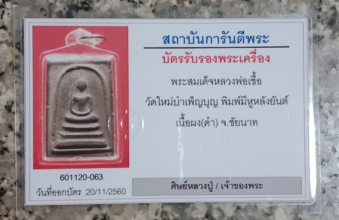 สมเด็จหลวงพ่อเชื้อ วัดใหม่บำเพ็ญบุญ + บัตร G-PRA
