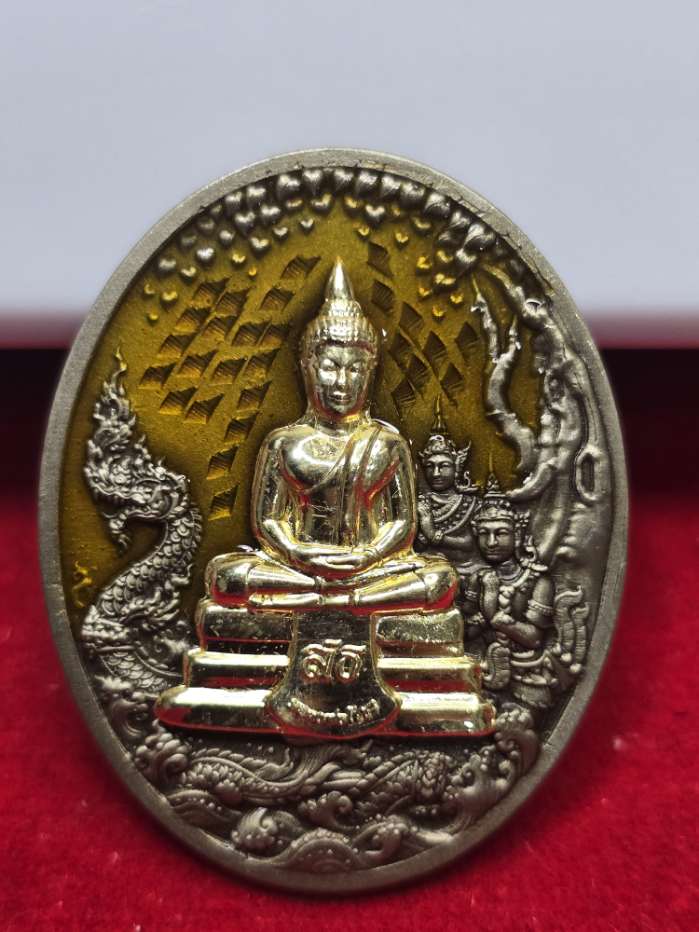 เหรียญหลวงพ่อโสธรรุ่นประวัติศาสตร์ครบรอบ 255 ปี วาระพิเศษ (วัดสร้าง) เนื้ออัลปาก้าซาตินลงยาเหลืองหน้ากากชุบทองคำ เลข155 พร้อมกล่องเดิม |