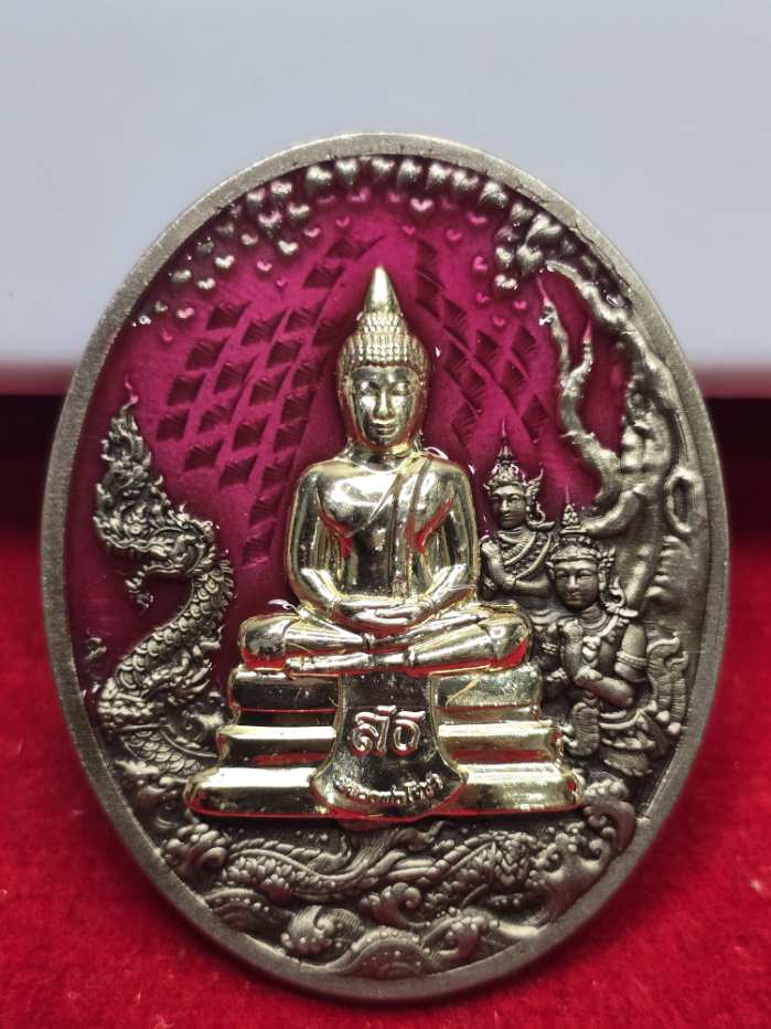 เหรียญหลวงพ่อโสธรรุ่นประวัติศาสตร์ครบรอบ 255 ปี วาระพิเศษ (วัดสร้าง) เนื้ออัลปาก้าซาตินลงยาชมพูหน้ากากชุบทองคำ เลข46 พร้อมกล่องเดิม |