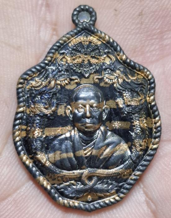 เหรียญมังกรคู่ พระอาจารย์อุ่นใจ (หลวงพ่ออุ่นใจ) วัดถนนโค้ง จ.นครราชสีมา มีจารมือ |