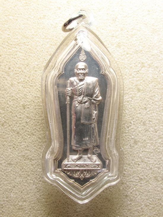เหรียญเนื้อเงิน พิมพ์ยืน ครูบาอิน ปี 45 (ตัดรุ้ง) เลี่ยมเดิม คัดสวย ระดับประกวด