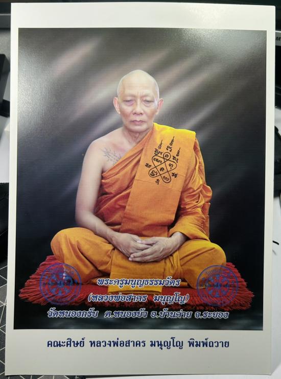 ๑.รูปภาพหลวงพ่อสาคร หลังโค้ดตรายาง ขนาด 8 นิ้ว * 12 นิ้ว (ขนาด A4 )