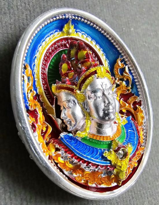 เนื้อชุบเงินลงยามาสเตอร์พีชหน้า-หลัง องค์ชุบเงินลงยา ฝังพลอยขาว เรืองแสง