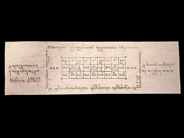 ***ผ้ายันต์กันฟ้า ขนาด 6x16 นิ้ว หลวงพ่อผิว วัดสง่างาม จ.ปราจีนบุรี ปี 2515*** |