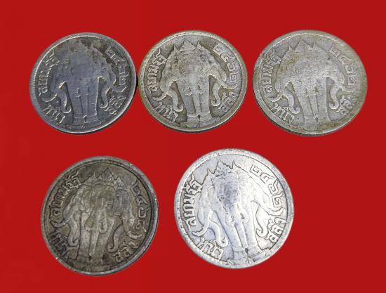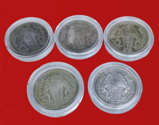 เหรียญ รัชกาลที่ 6 หนึ่งสลึง ปี 2462 (ช้างสามเศียร) เนื้อเงิน ทั้ง5 เหรียญ พร้อมตลับใส |