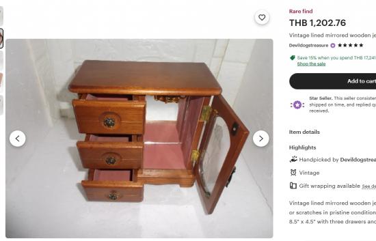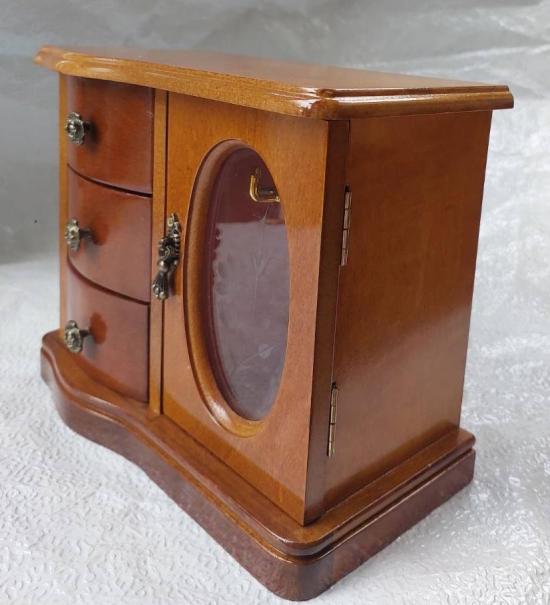 ***วัดใจ***กล่องเครื่องประดับ ขนาดเล็ก เนื้อไม้วินเทจญี่ปุ่น งานฝีมือเก่า 3 ลิ้นชัก 1 บานเปิด ขนาด กว้าง 22 ลึก 12 สูง 18 CM. |