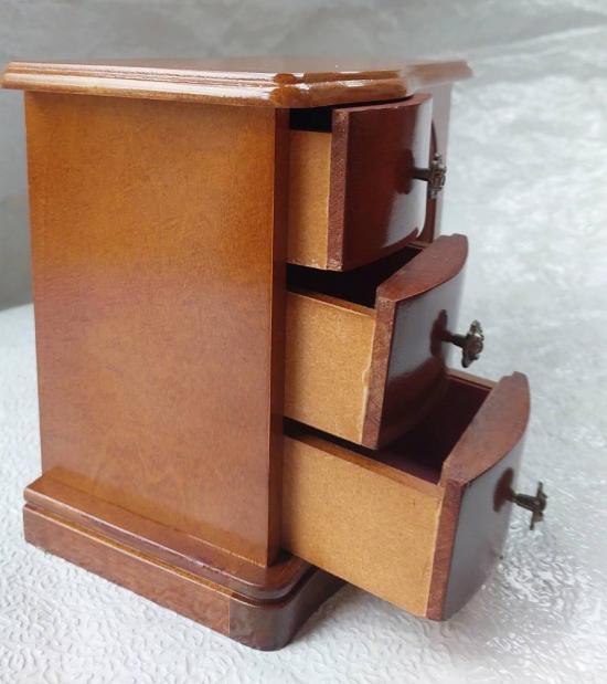 ตู้เครื่องประดับ ขนาดเล็ก เนื้อไม้วินเทจญี่ปุ่น งานฝีมือเก่า 3 ลิ้นชัก 1 บานเปิด ขนาด กว้าง 22 ลึก 12 สูง 18 CM.