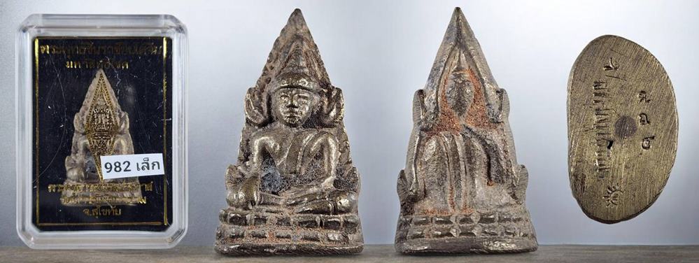 รูปหล่อโบราณพระพุทธชินราชอินโดจีน รุ่นมหาสิทธิโชค เนื้อชนวน พิมพ์เล็ก หมายเลข 982 สภาพสวยเดิมๆพร้อมกล่องครับ