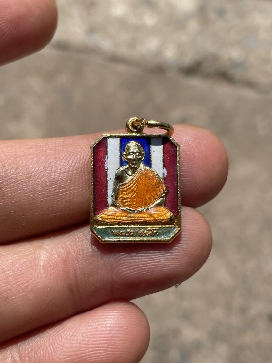 100 หลวงพ่อเกษม เขมโก เหรียญกินบ่เสี้ยง เฮง เฮง กะไหล่ทองลงยาสีธงชาติ ปี 2538 |