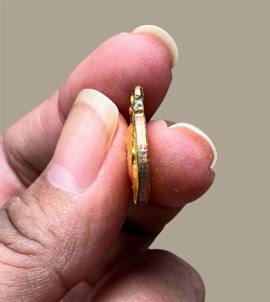 เหรียญกลมเล็กหลวงปู่ฝั้น อาจาโร เนื้อทองแดงหน้ากากทองคำทั้งด้านหน้าและด้านหลัง วัดป่าอุดมสมพร จ.สกลนคร ปี2519 |
