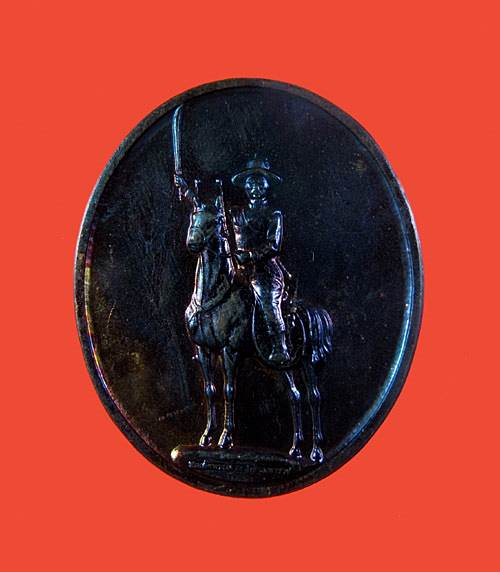 เหรียญสมเด็จพระเจ้าตากสินมหาราช (ทรงม้า) จัดสร้างโดยเขตคลองสาน ปี37 เนื้อทองแดงผิวรุ้ง ซองเดิม 6 เหรียญ |