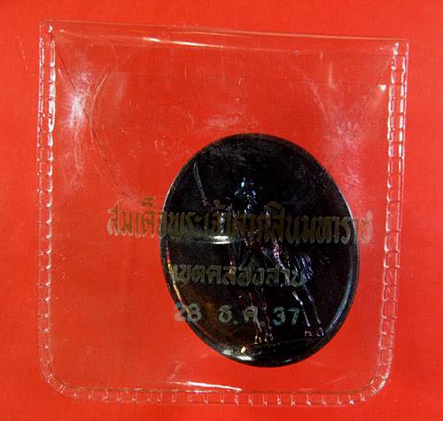 -เหรียญสมเด็จพระเจ้าตากสินมหาราช (ทรงม้า) จัดสร้างโดยเขตคลองสาน ปี37 เนื้อทองแดงผิวรุ้ง ซองเดิม 6 เหรียญ