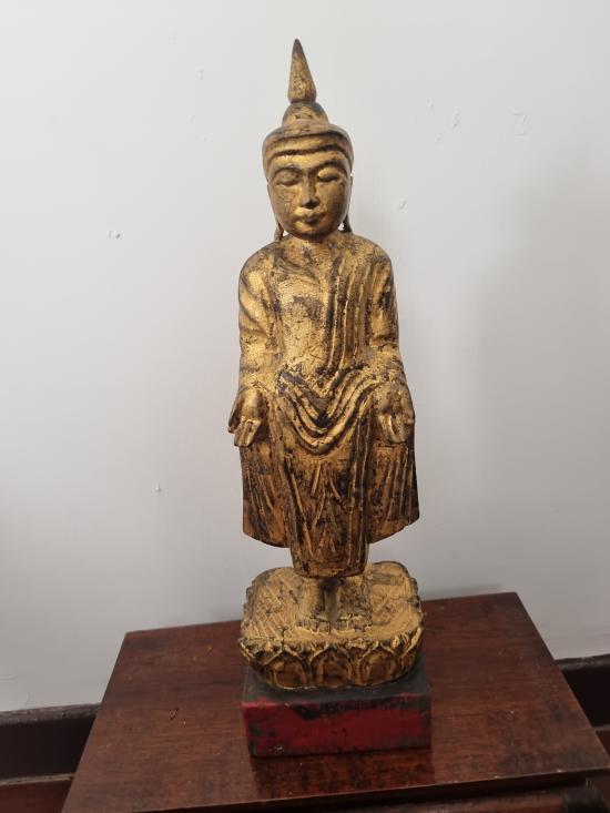 บูชาไม้แกะศิลปพม่า เกาลึก มีขี้ยุง ยอดเกศถอดได้ |