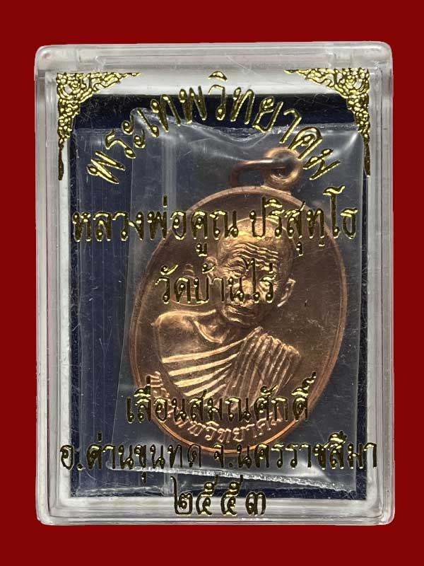 เหรียญเลื่อนสมณศักดิ์ หลวงพ่อคูณ ปี 53 เนื้อทองแดง พร้อมกล่องดิม ...