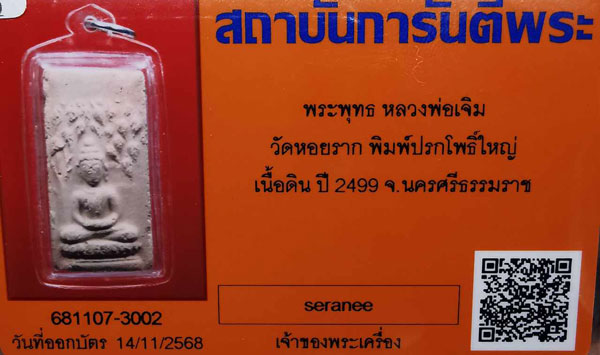 พระพุทธ หลวงพ่อเจิม วัดหอยราก พิมพ์ปรกโพธิ์ใหญ่ เนื้อดิน ปี2499 จ.นครศรีธรรมราช + บัตรG-pra สภาพสวยเดิมค่ะ สภาพตามรูปทุกประการค่ะ