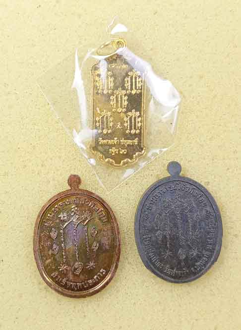 เหรียญเทพเจ้าไฉ่ซิงเอี๊ย 2 เหรียญ + เหรียญอาแปะโรงสี 3 เหรียญ |