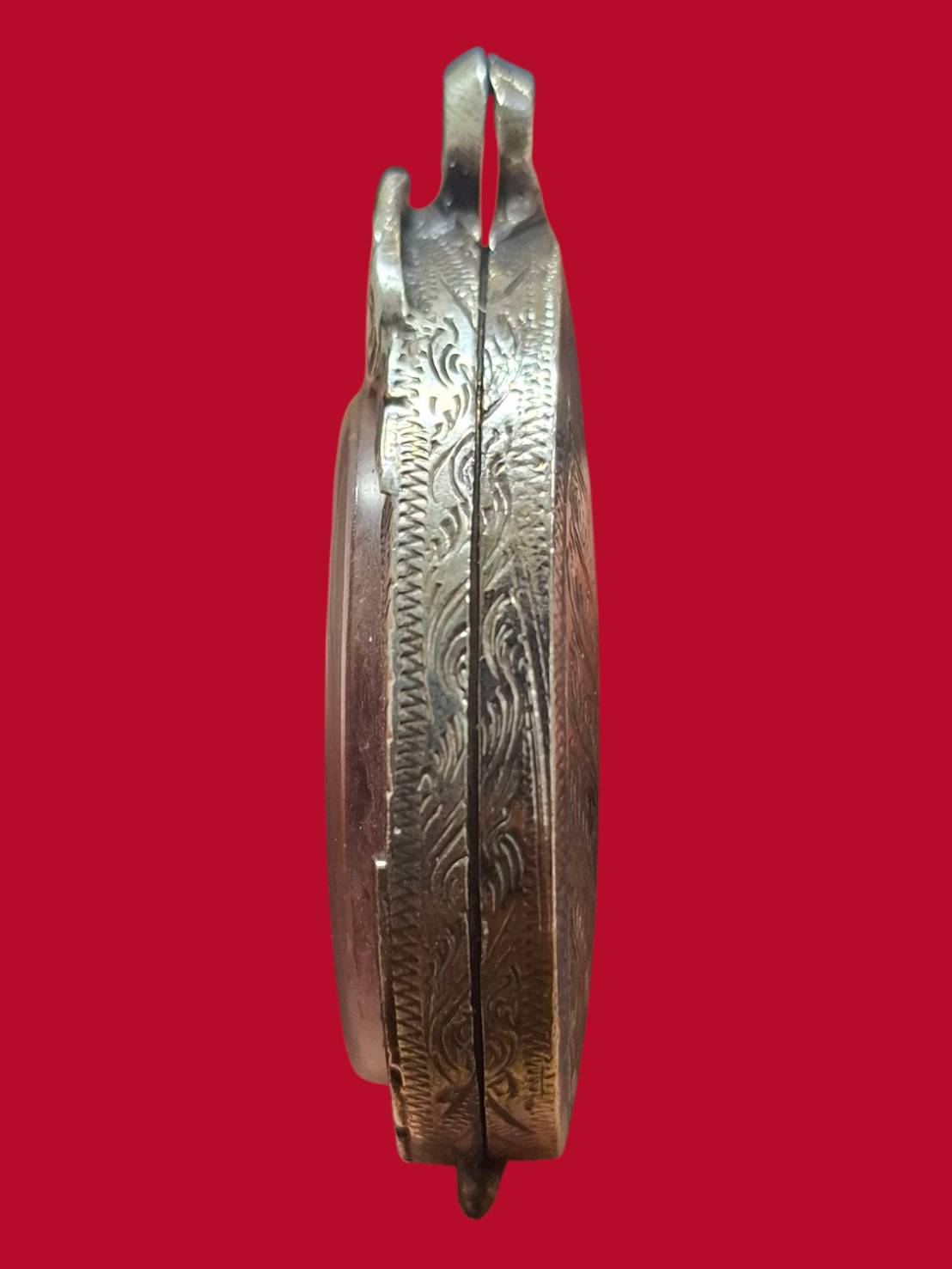 ตลับเงิน มือสอง ทรงเหรียญรูปไข่ สภาพสวย ปิดหลัง มีห่วง |