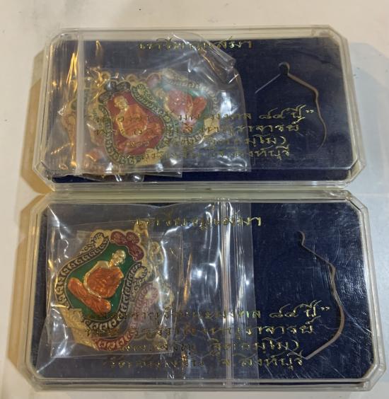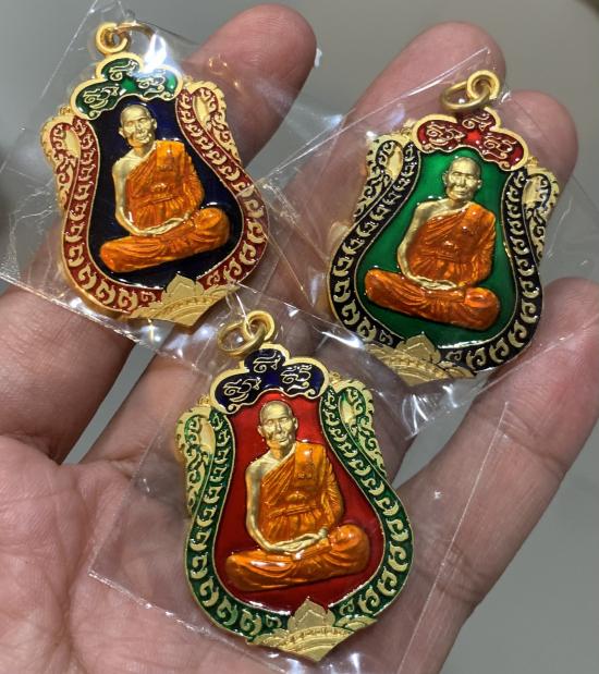 วัดใจ40 เหรียญเสมา7รอบ ฉลองอายุวัฒนะ 84ปี หลวงพ่อจรัญ วัดอัมพวัน จ.สิงห์บุรี ชุดกะหลั่ยทองลงยาสามสี 2ชุด รวม6 องค์