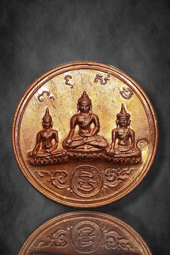 เหรียญขวัญถุง พระสามสมัย มั่งมีศรีสุข วัดชิโนรส ปี 2512 เนื้อทองแดงกะไหล่ทอง(หลวงปู่โต๊ะ, หลวงพ่อพรหม, หลวงพ่อกวย หลวงปู่สุข อาจารย์นำ ปลุกเสก)