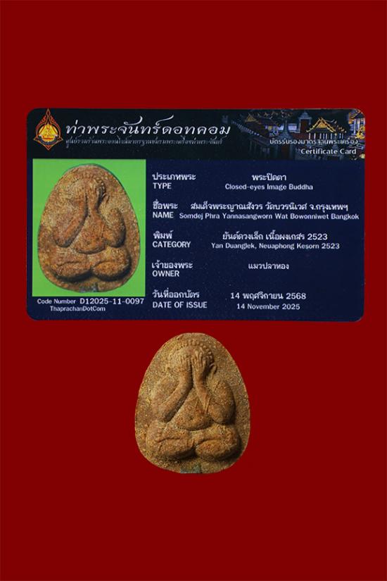 พระปิดตายันต์ดวงเล็ก ปี2523 สมเด็จพระญาณสังวร (เจริญ) วัดบวรนิเวศ_เนื้อผงเกสร_ พร้อมบัตรรับรองท่าพระจันทร์ดอทคอม