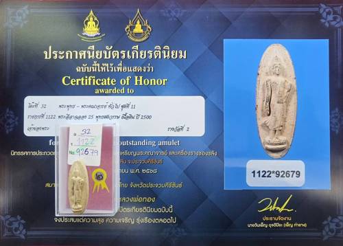 พระลีลาฉลอง25พุทธศตวรรษ เนื้อดิน ปี2500 ติดรางวัลที่2 งานสมาคมพระเครื่องพระบูชาไทย |