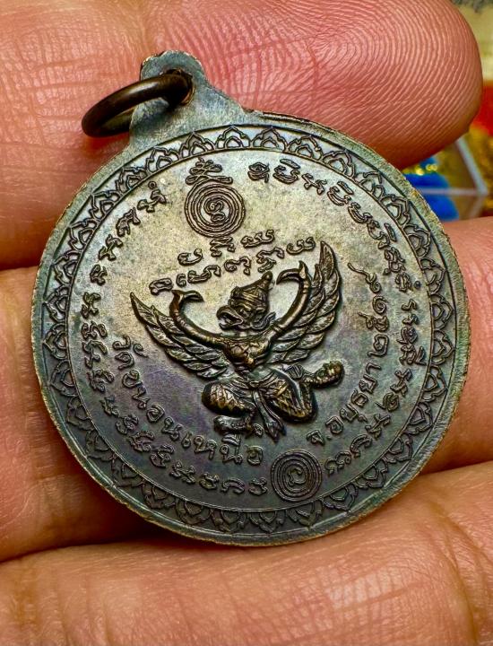 เหรียญกลมหลังครุฑ หลวงพ่อพรหม วัดขนอนเหนือ เนื้อทองแดง ปี 2519