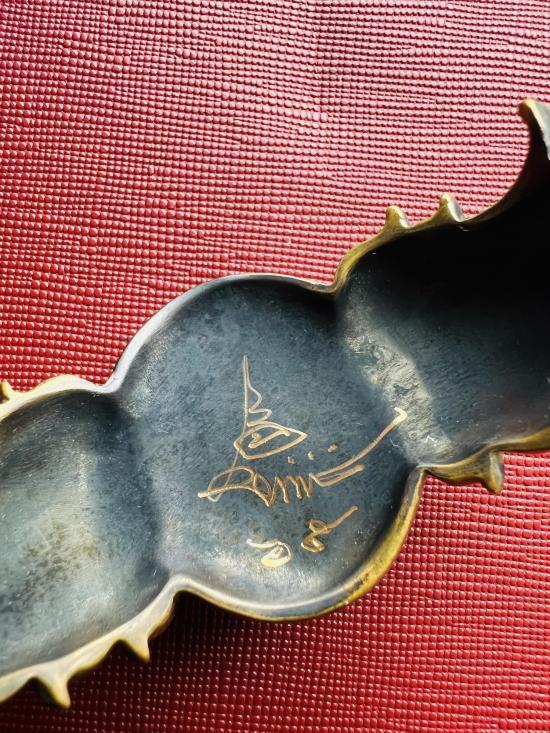รายละเอียด กราบขออนุญาตท่านอาจารย์เฉลิมชัย นำเสนอ กำไลพระราหู เนื้อบรอนซ์ วงเล็ก พร้อมลายเซ็นต์ ท่านอาจารย์เฉลิมชัยครับ กล่องเดิมอยู่ครบครับ