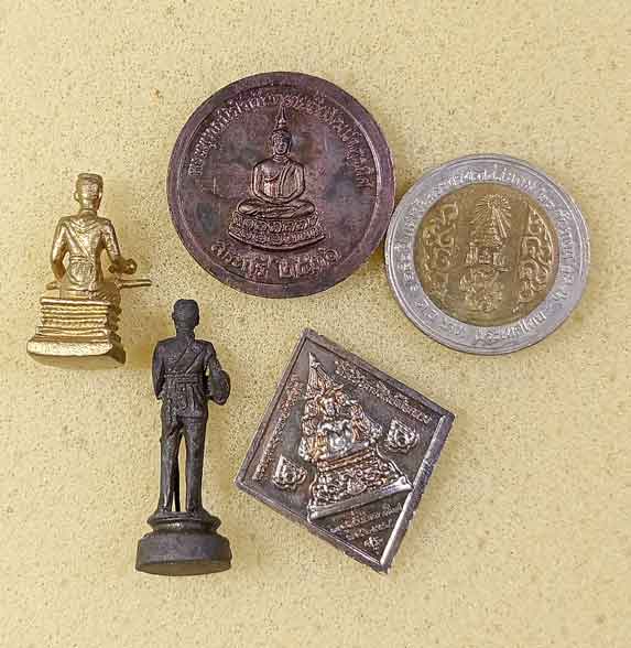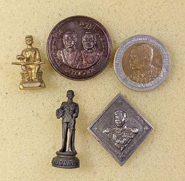 รูปหล่อสมเด็จพระนเรศวรมหาราช + เหรียญพระเจ้าตากสินมหาราช + เหรียญ + รูปหล่อยืน ร.5+ เหรียญกรมหลวงชุมพรฯ + เหรียญร.9 4 เหรียญ |