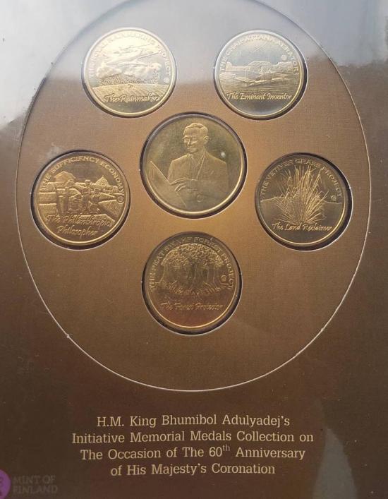 ชุดเหรียญที่ระลึกโครงการพระราชดำริเฉลิมพระเกียรติ 60 ปี บรมราชาภิเษก ผลิตที่ประเทศฟินแลนด์
