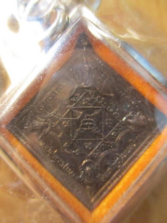 เหรียญพระพรหมสี่หน้า ลพ.เกษม หลังตอกโค้ต ปี38 พิมพ์เล็ก พร้อมกรอบพร้อมแหนบ ขนาดกว้างยาว 2.7ซม รวมกรอบ