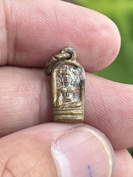 พระใบมะขาม พระพุทธ หลังนางกวัก ส.ม. หลวงปู่เหมือน วัดกำแพง ปี 2501 เนื้อทองแดงกระหลั่ยทอง ผิวหิ้ง