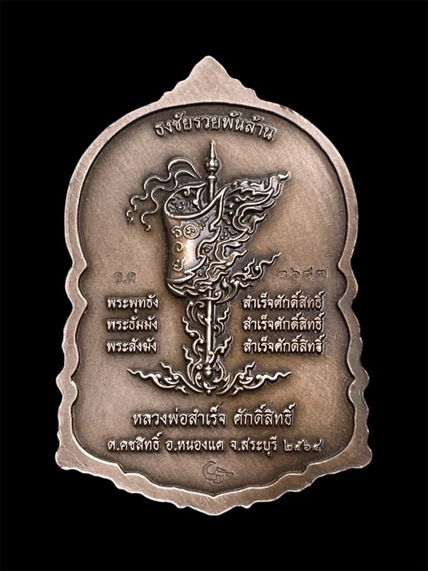 หลวงพ่อสำเร็จศักดิ์สิทธิ์ อ.หนองแค จ.สระบุรี รุ่นรวยพันล้าน ปี 2564 เนื้ออัลปาก้าซาตินลงยาจีวร หมายเลข 2683 ขนาดพระสูง 3.9 ซ.ม. พร้อมกล่องเดิม #หลวงปู่มหาศิลาร่วมปลุกเสกปี2564