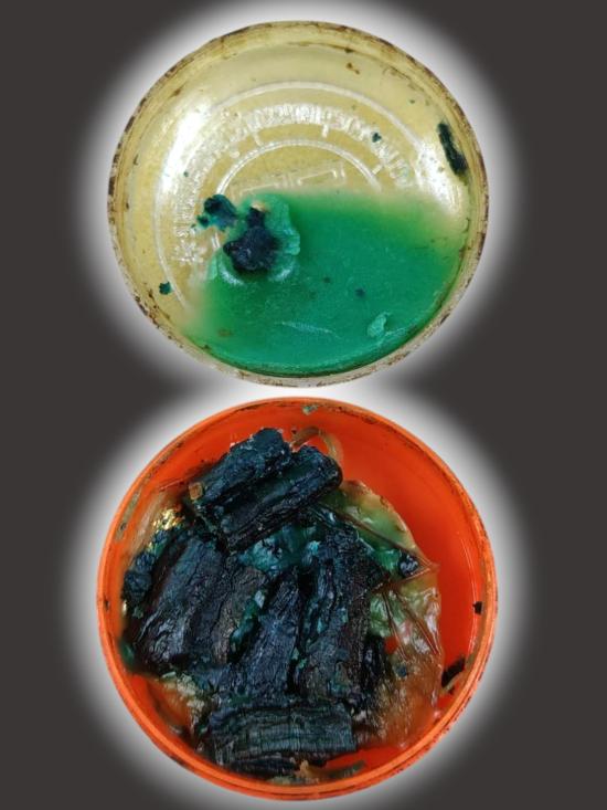 A4002.วัดใจของดีของขลัง!! สีผึ้งเก่า สีเขียว ไม่ทราบที่ เคาะเดียวเเดง |