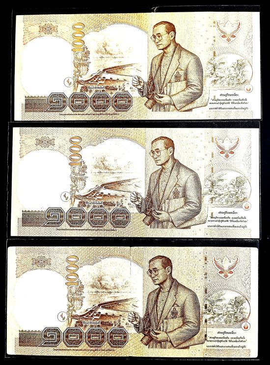 ธนบัตร 1,000 บาท ร.9 แบบ 15 จำนวน 3 ใบ ผ่านใช้ 2 ใบ ไม่ผ่านใช้ 1 ใบ (UNC 0996990) ในชุดมีเลขกระจก 2ใบ และหมวดเสริม S หายาก เปิดให้แลก เคาะเดียวค่าส่ง