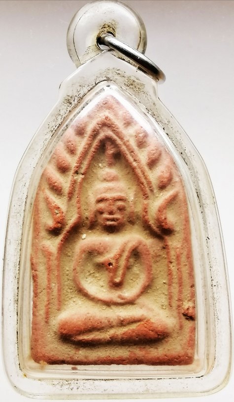 พระขุนแผนปลัดทวี พิมพ์ทรงปางสมาธิ เนื้อดิน หลังลายผ้า ปีพ.ศ.2490 เลี่ยมพลาสติกรุ่นเก่าพร้อมใช้มาเดิม ๆ