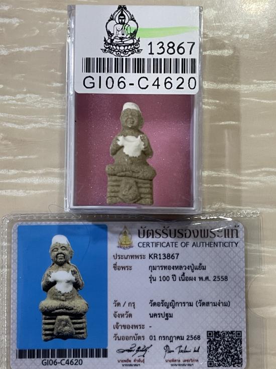 (เคาะแดง2500) +บัตรสมาคม กุมารเนื้อผสมผงพราย หลวงพ่อแย้ม วัดสามง่าม